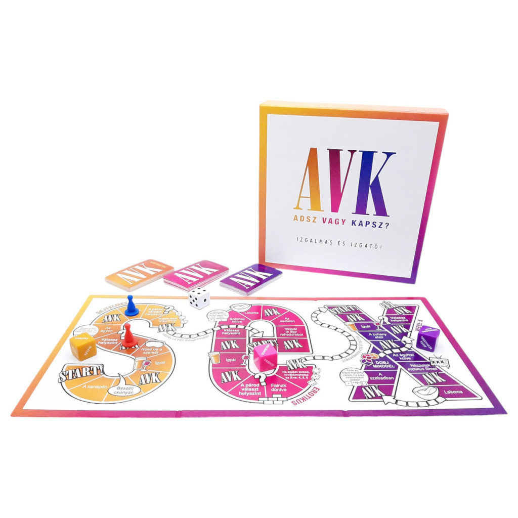 Fedezzétek fel egymás legtitkosabb vágyait és mélyítsétek el a kapcsolatotokat az AVK: Adsz Vagy Kapsz felnőtt társasjátékkal! Ez a magyar nyelvű, izgalmas játék kifejezetten párok számára készült, hogy megtörje a hétköznapok rutinját, és érzéki kalandokat Viddn a hálószobába.