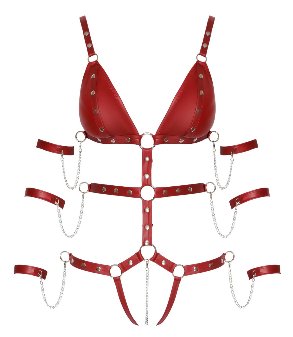 Engedd szabadjára a benned rejlő vadócot a Bad Kitty szegecses bondage bodyval! Ez a lenyűgöző, vibráló piros darab nem csupán egy fehérnemű, hanem az önbizalom és a vágy kifejezése. A dögös megjelenés és a bondage-stílusú pántozás kombinációja garantálja, hogy minden tekintet rád szegeződjön a hálószobában.