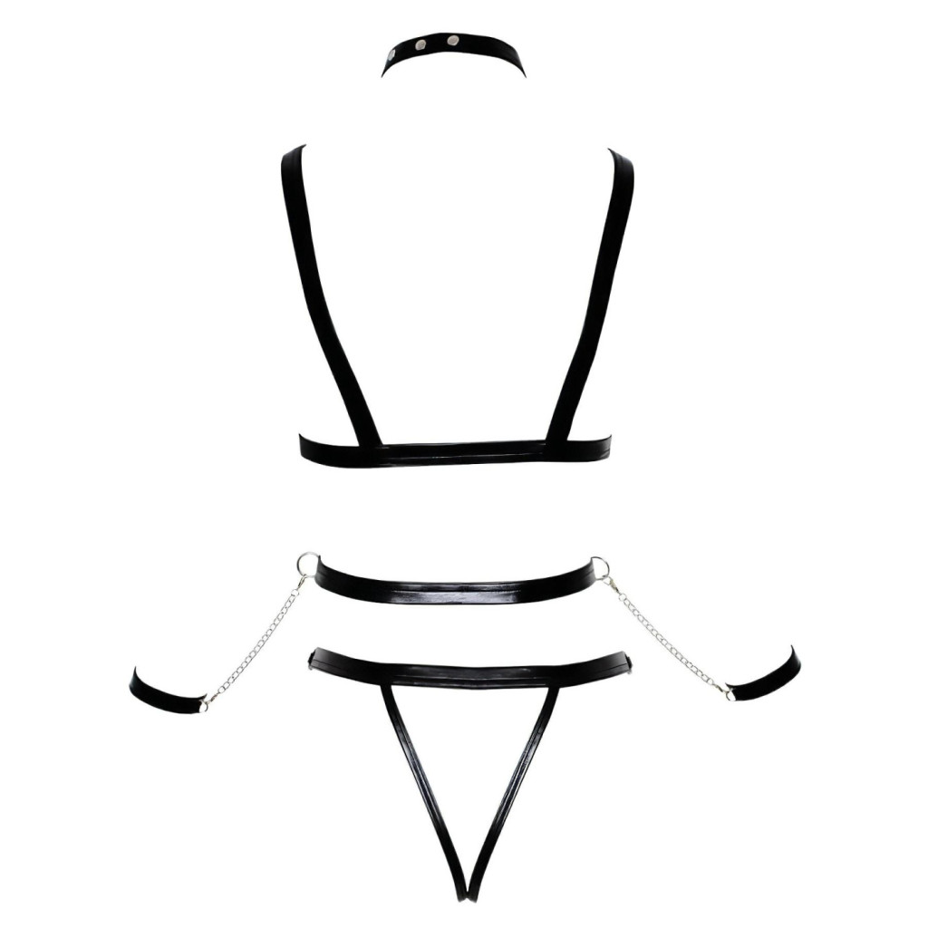 - Komplett szett: A csomag tartalmazza a látványos testhámot és a hozzá illeszkedő, stílusos kar bilincseket is.
