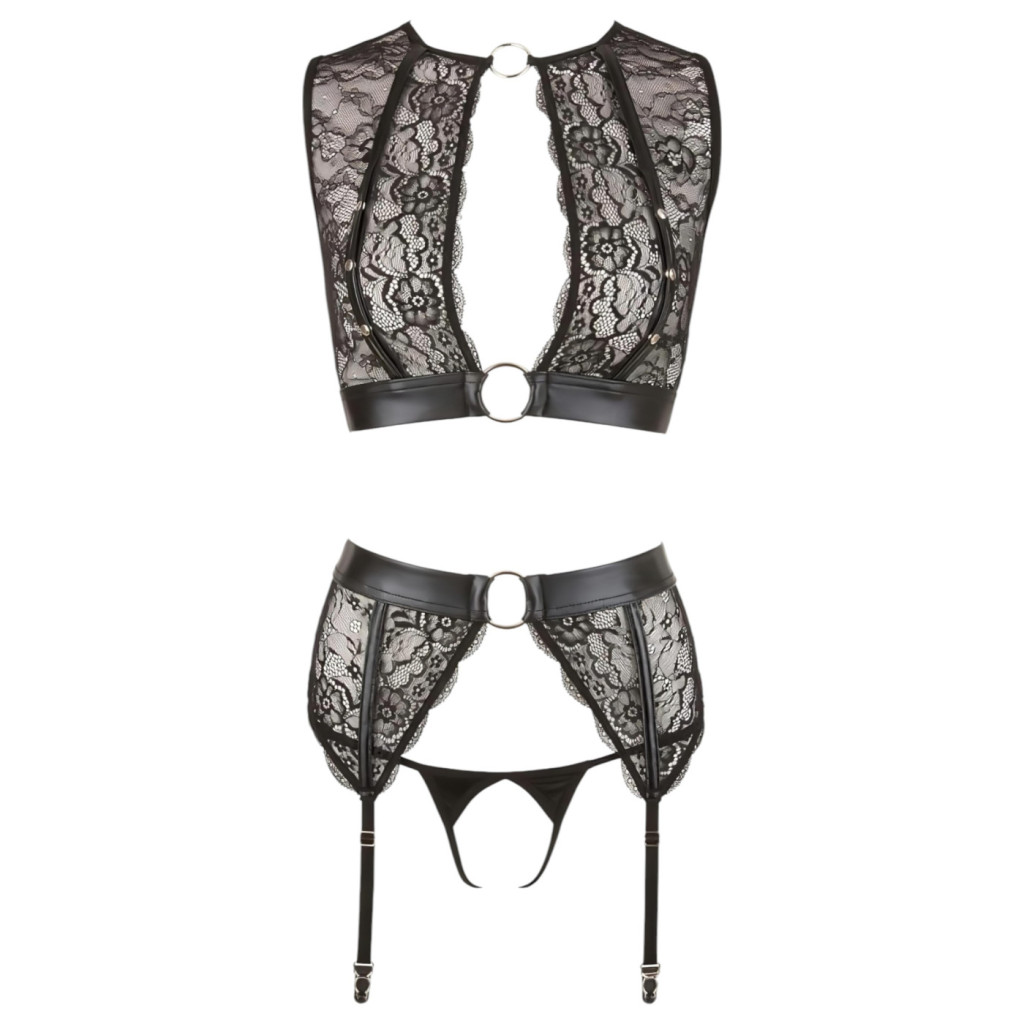 Fedezd fel a csábítás új dimenzióját a Cottelli Bondage exkluzív, négyrészes fehérnemű szettjével. Ez az összeállítás azoknak a nőknek készült, akik szeretik ötvözni a klasszikus eleganciát a merész, provokatív stílussal. A mélyfekete szín és a finom kidolgozású csipke garantáltan magabiztosságot és ellenállhatatlan kisugárzást kölcsönöz viselőjének.
