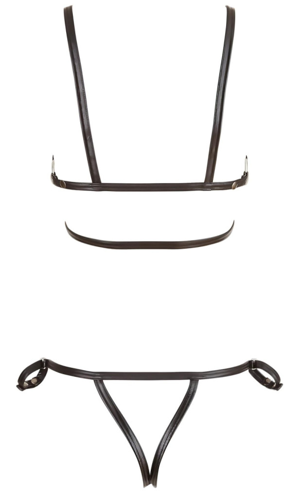 Lépjen be a csábítás és a dominancia izgalmas világába a Cottelli Bondage fényes dísz testhám bikinivel. Ez a különleges darab azoknak a nőknek készült, akik nem félnek megmutatni erejüket és érzékiségüket a hálószobában. A fekete, magasfényű anyag és a bondage stílusú pántok kombinációja azonnal mágnesként vonzza a tekintetet.