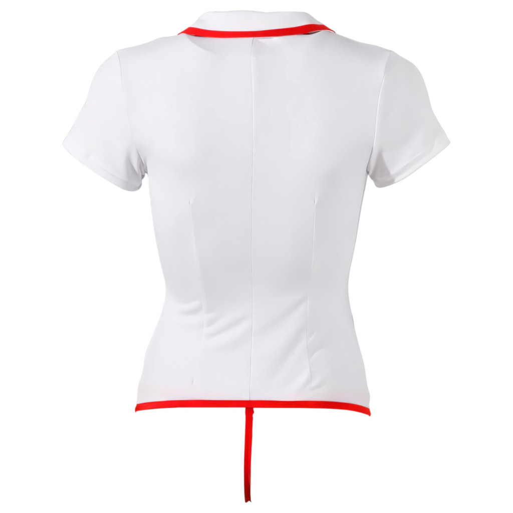 A felső kialakítása hangsúlyozza a nőies idomokat, miközben a finom részletek – mint a jellegzetes vörös keresztes díszítés – azonnal felismerhetővé teszik a karaktert. A prémium minőségű, rugalmas anyag gondoskodik a kényelmes viseletről, így te magabiztosan koncentrálhat a "páciens" ápolására.