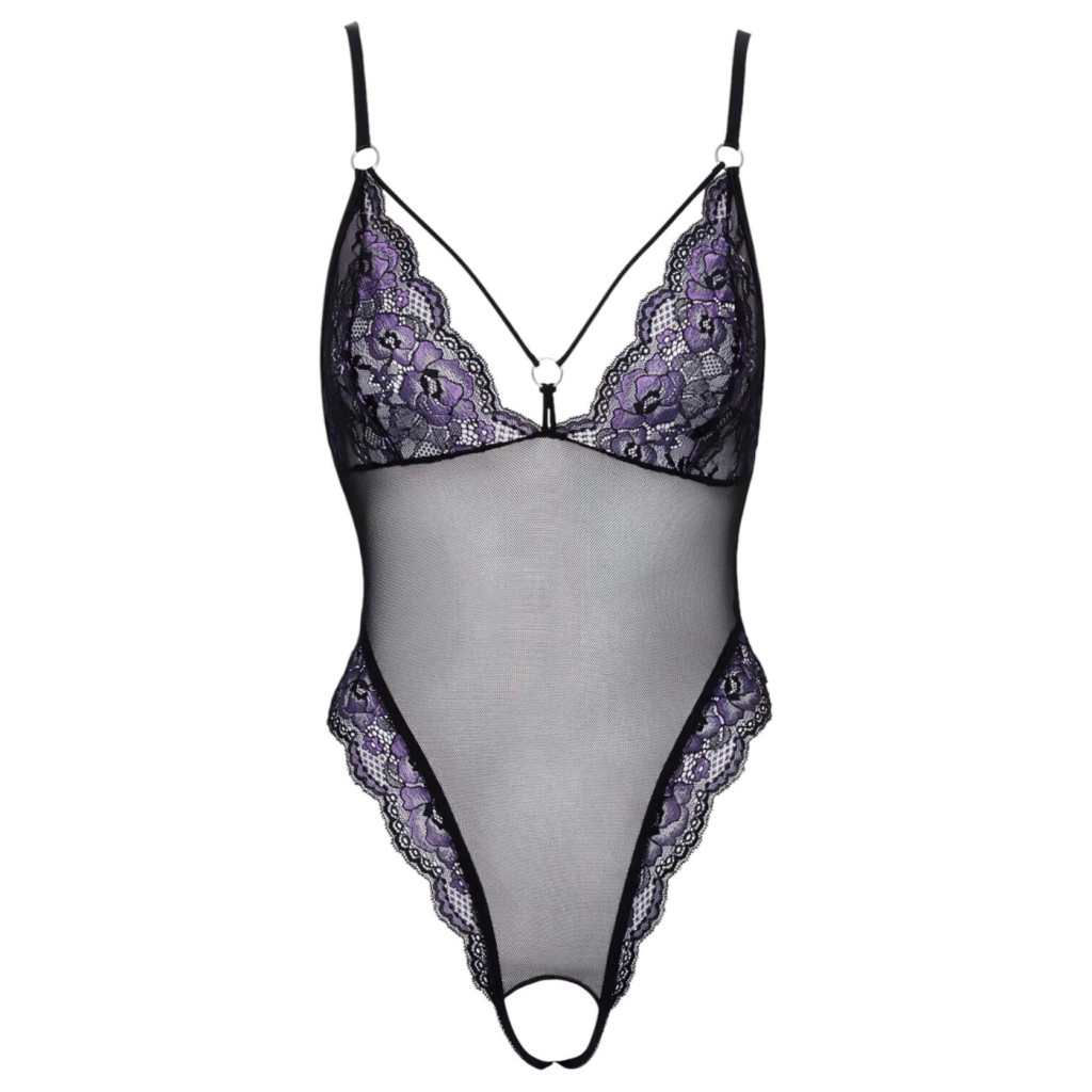 Cottelli - Elegáns és Provokatív Hímzett Nyitott Body (Fekete-Lila)