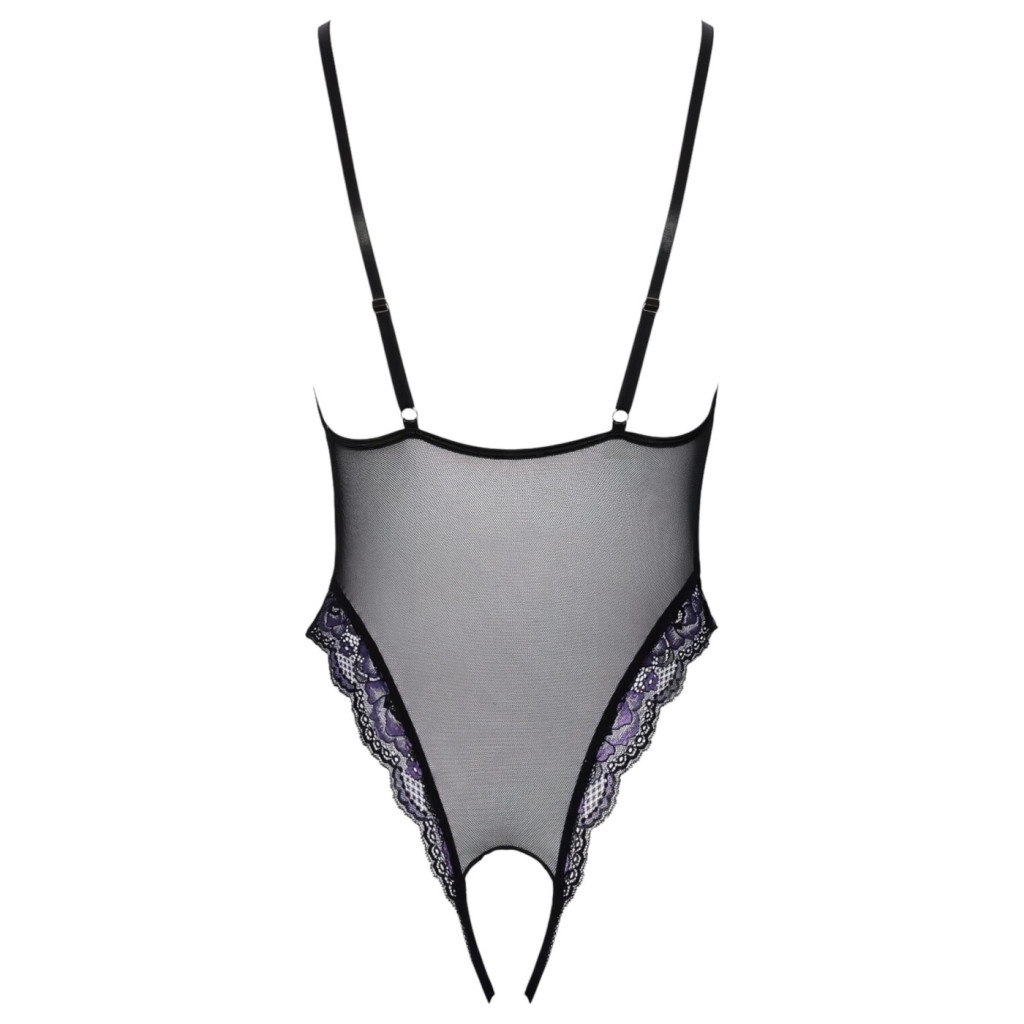 Viddn egy csipetnyi luxust és izgalmat a hálószobába a Cottelli hímzett, nyitott csipke bodyval. Ez a különleges darab a klasszikus fekete eleganciát ötvözi a vibráló lila hímzésekkel, így teremtve meg a tökéletes egyensúlyt a kifinomultság és a vadító csábítás között.