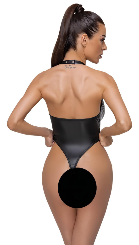 A body különlegessége a magasfényű, wet-look hatású anyagban rejlik, amely lágyan simul az idomokra, miközben izgalmasan veri vissza a fényt. A nyakpántos (halterneck) kialakítás szabadon Hagyd a vállakat és a hátat, így rendkívül érzéki és vonzó sziluettet kölcsönöz viselőjének.