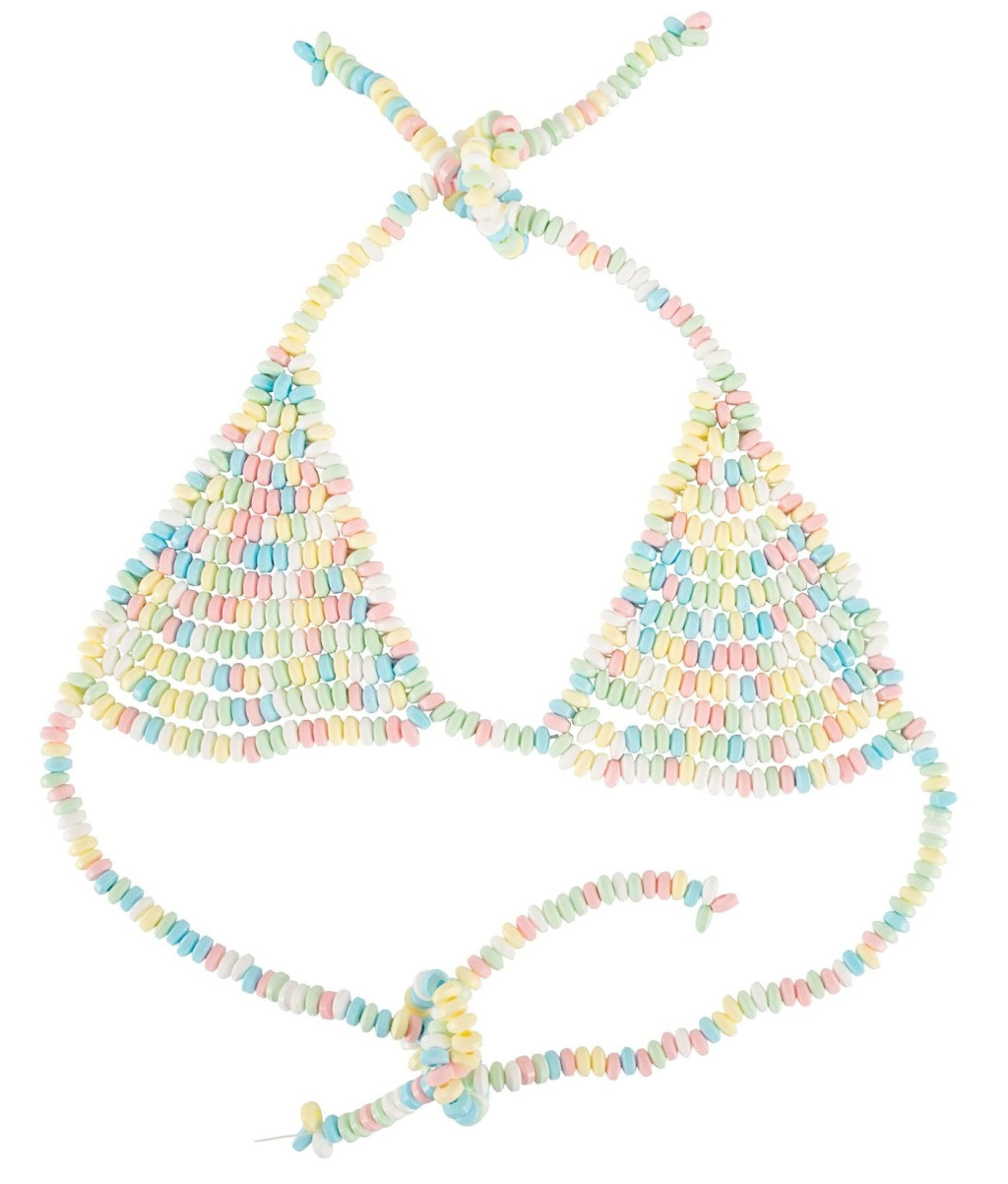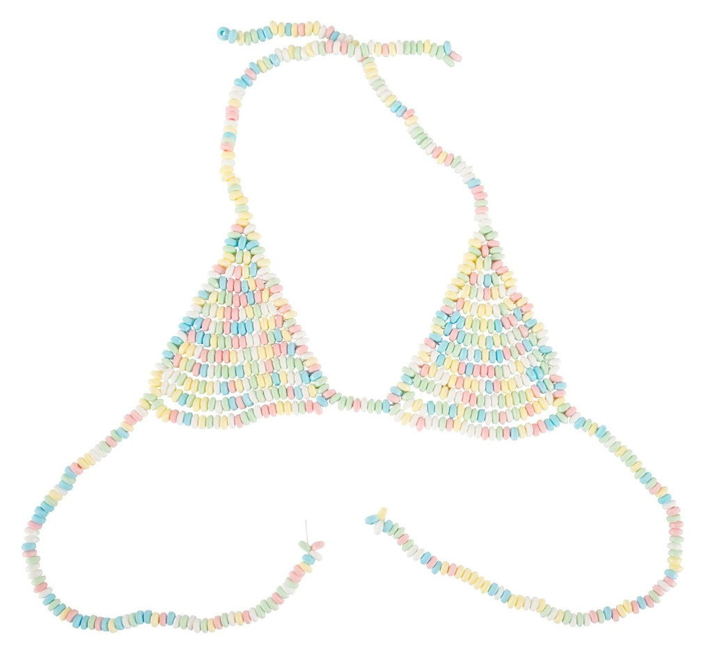 Tedd felejthetetlenné és játékossá az intim pillanatokat ezzel az egyedi, édes kiegészítővel! A Cukor melltartó a romantika és a játékosság tökéletes ötvözete, amely nemcsak látványos, hanem finom is. Ez a különleges fehérnemű apró, pasztellszínű cukorkákból készült, amelyek rugalmas szálra vannak fűzve, így biztosítva a kényelmes és vonzó illeszkedést.