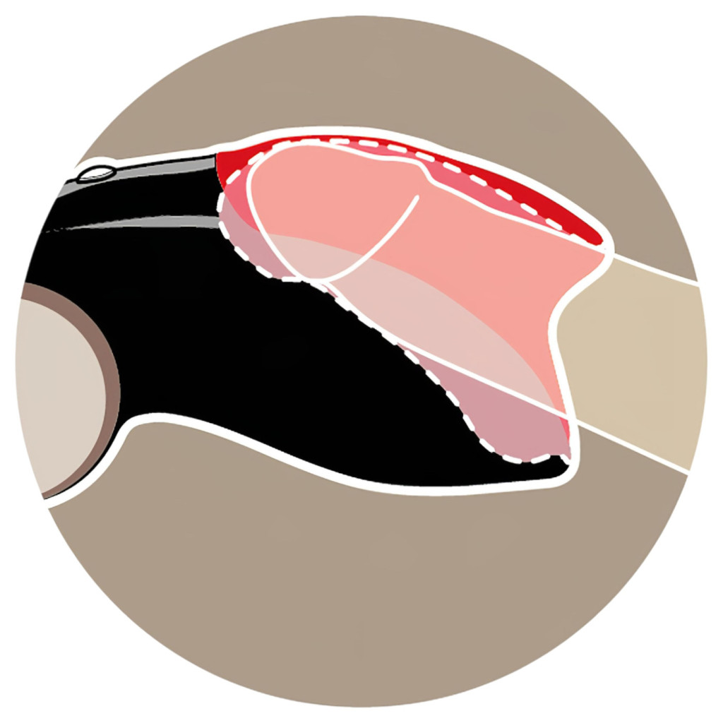 - Célzott stimuláció: A különleges, nyitott kialakítás pontosan a makkra és a fékre (frenulum) fókuszálja az energiát.