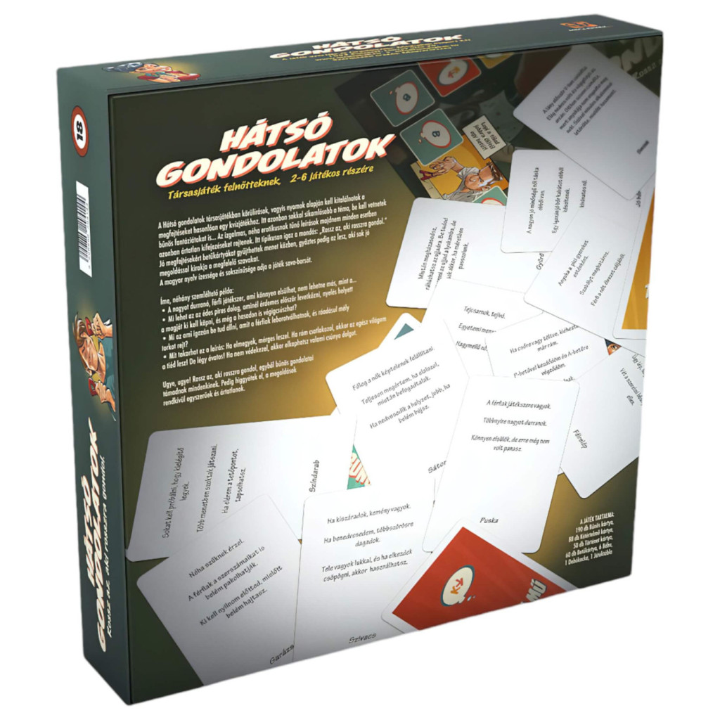 Készen állsz egy olyan agytornára, ahol a válaszok korántsem olyan bűnösek, mint amilyennek elsőre tűnnek? A Hátsó gondolatok egy rendkívül szórakoztató, kétértelmű találós kérdésekkel teli kártyajáték, amely garantáltan próbára teszi a fantáziádat és a barátaid erkölcsi iránytűjét!