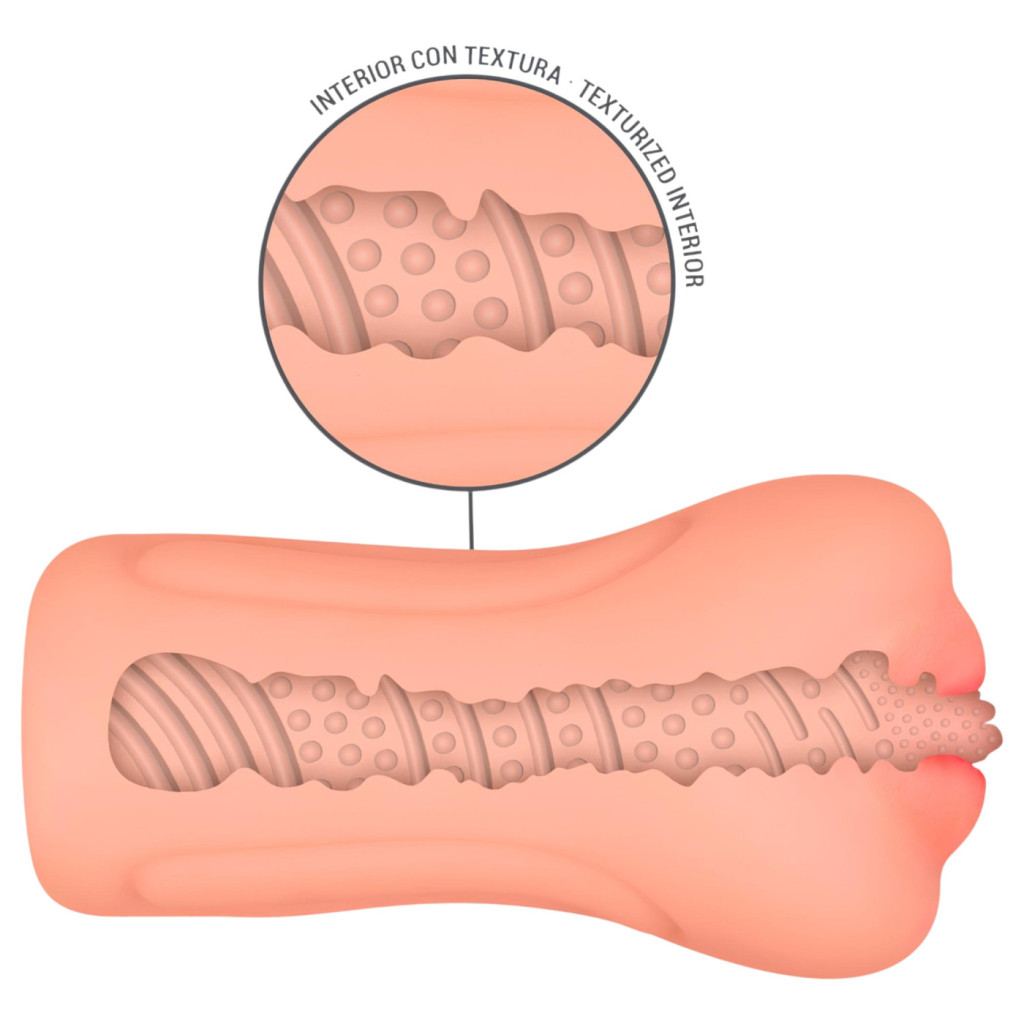 A termék különlegessége a rendkívül rugalmas és bőrbarát TPE anyagban rejlik, amely nemcsak tapintásra idézi a valódi bőrt, de a testhőmérsékletet is gyorsan átveszi, így téve még természetesebbé az együttlétet. A belső csatorna komplex textúrával rendelkezik: a stratégiailag elhelyezett barázdák és stimuláló dudorok minden mozdulatnál intenzív kényeztetést nyújtanak.