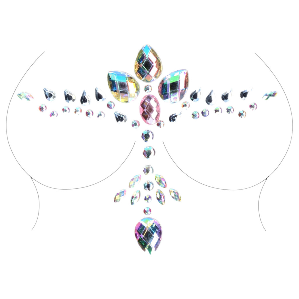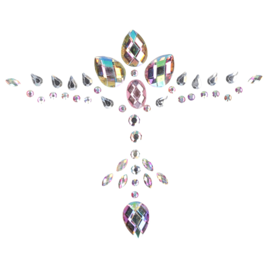 A matrica különlegessége a speciális szivárványos fénytörésű kristályokban rejlik, amelyek minden mozdulatnál más-más színben pompáznak, elegáns és misztikus aurát kölcsönözve viselőjének. Legyen szó egy elegáns esti partiról, egy fergeteges fesztiválról vagy egy különleges randevúról, ez a dekoltázs matrica tökéletes választás a ragyogni vágyó hölgyek számára.