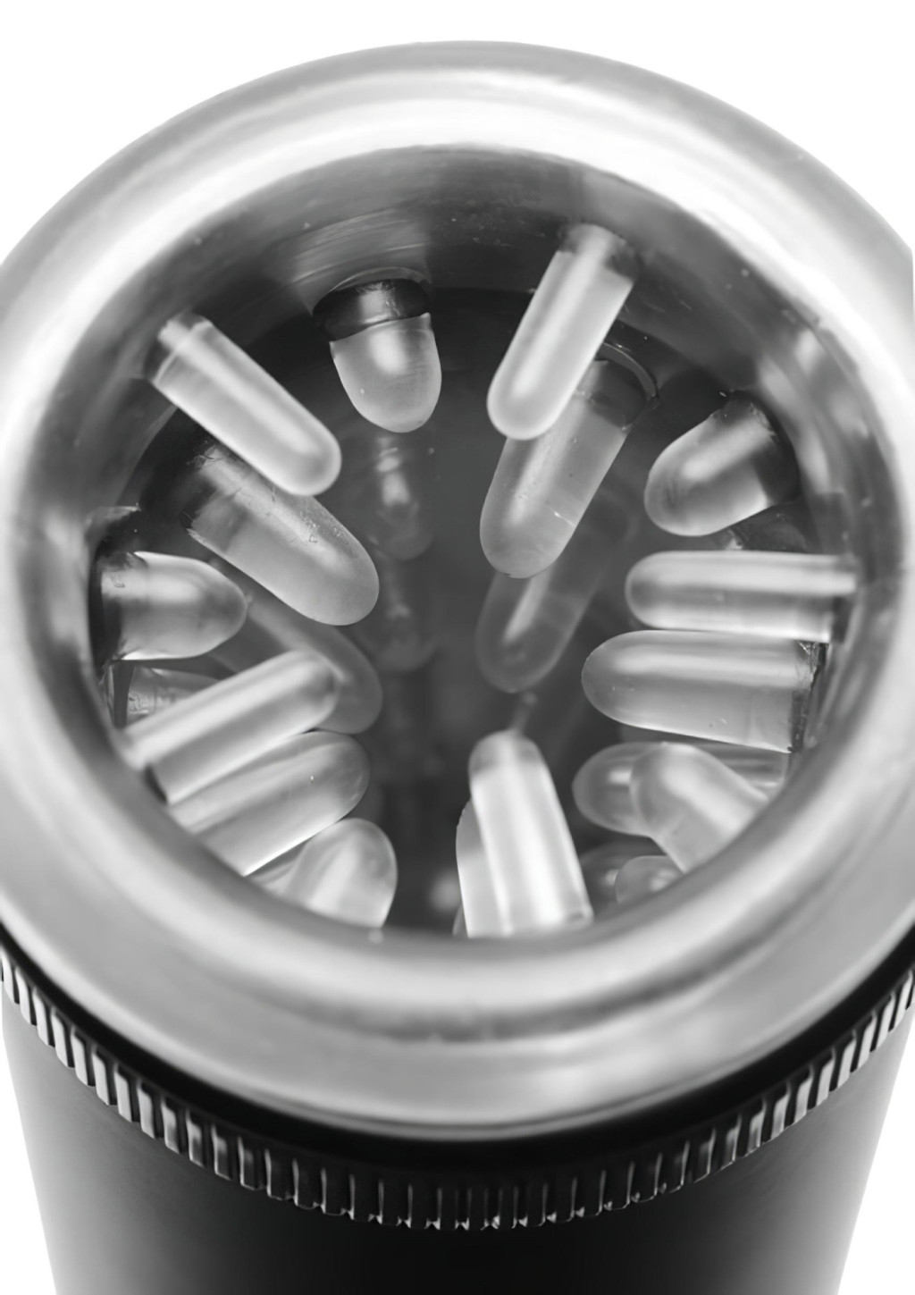 A Master-Bot legfőbb vonzereje az intenzív fel-le mozgó mechanizmusban rejlik. A készülék belső fala puha, rugalmas tüskékkel van borítva, amelyek minden egyes mozdulatnál finoman, mégis határozottan masszírozzák a péniszt. Az ergonomikus, elegáns fekete borítás biztos fogást garantál, míg a csendes motor lehetővé teszi a diszkrét használatot.