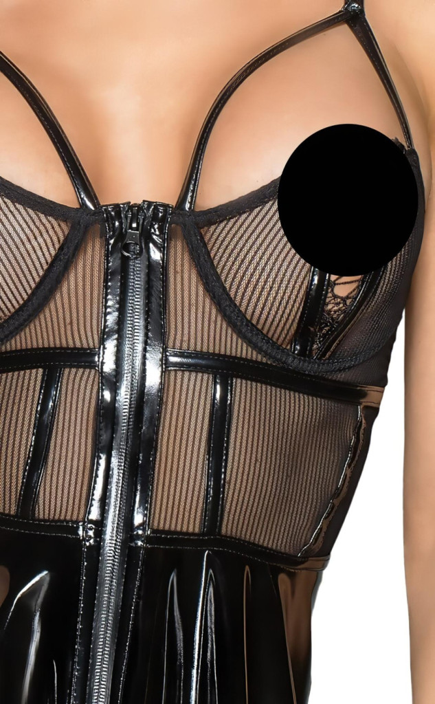 Emeld ki magabiztosságát és nőiességedet a Noir neccbetétes lakk ruhával. Ez a darab nem csupán egy öltözék, hanem egy kijelentés: a modern, merész stílus és az érzéki megjelenés tökéletes ötvözete. A mélyfekete, magasfényű lakk anyag azonnal magára vonzza a tekinteteket, miközben prémium megjelenést kölcsönöz viselőjének.