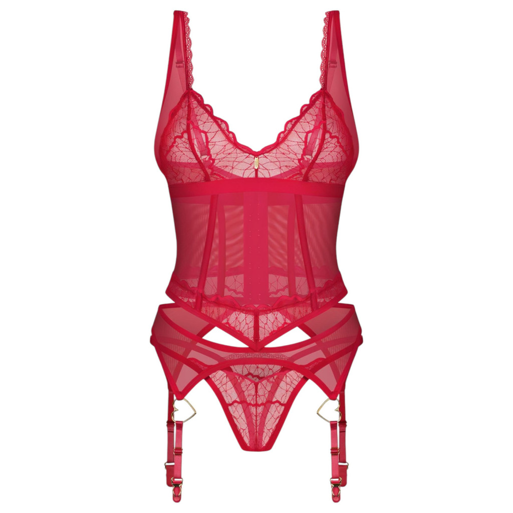 Szenvedélyes elegancia: Obsessive Cupide Desir piros csipkés szett