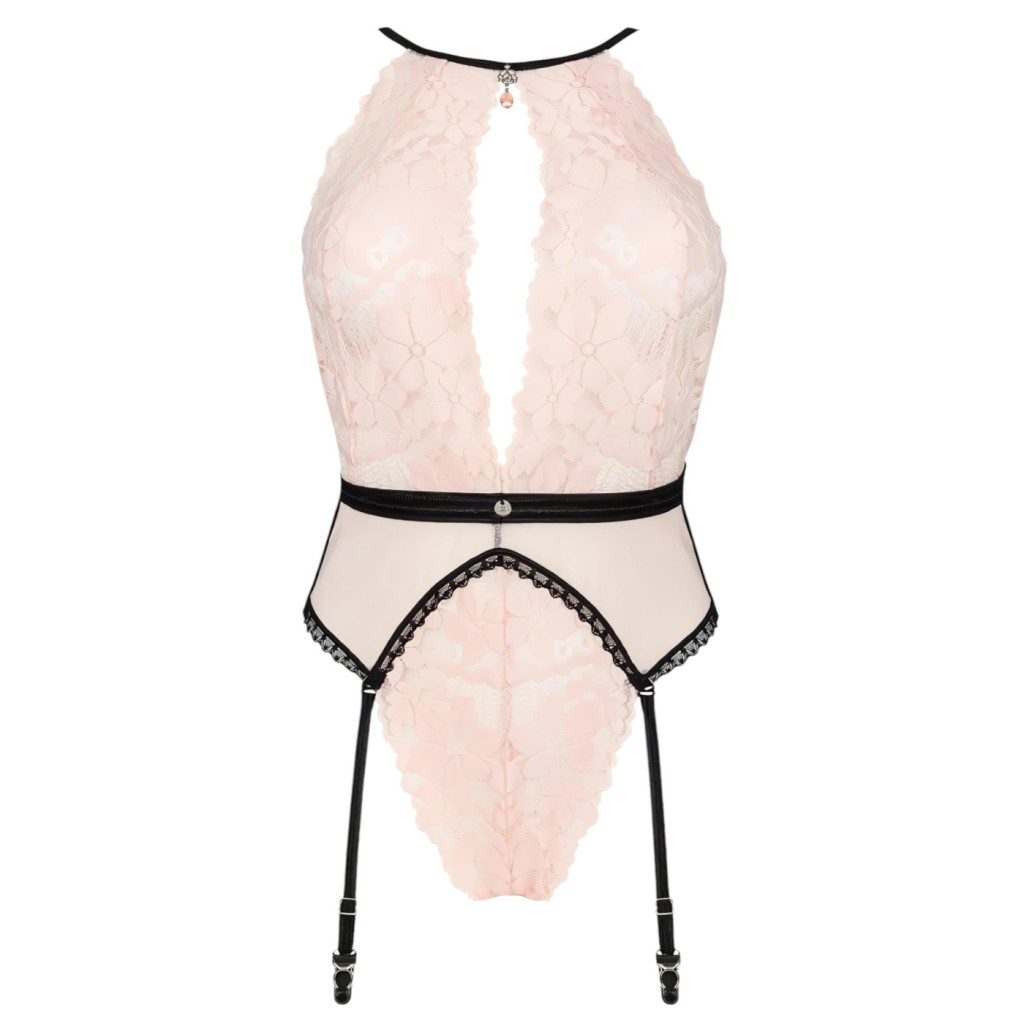 A body különlegessége a finom kidolgozású, virágmintás csipke és az áttetsző anyagok játéka, amely egyszerre sejteti és mutatja meg a test szépségét. Az integrált harisnyatartó pántok nemcsak praktikusak, hanem vizuálisan nyújtják a lábakat, még vonzóbbá téve a megjelenést.
