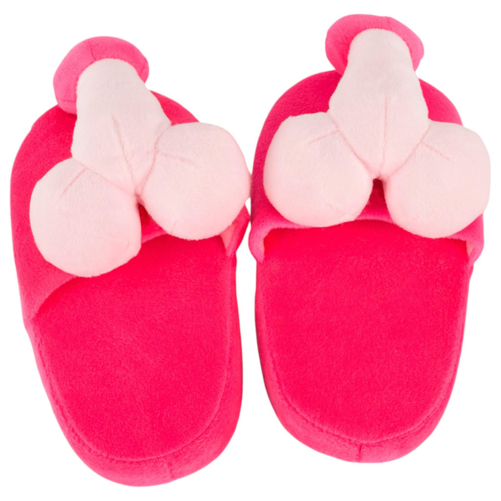 Garantált jókedv és kényelem: Rózsaszín pénisz formájú plüss papucs
