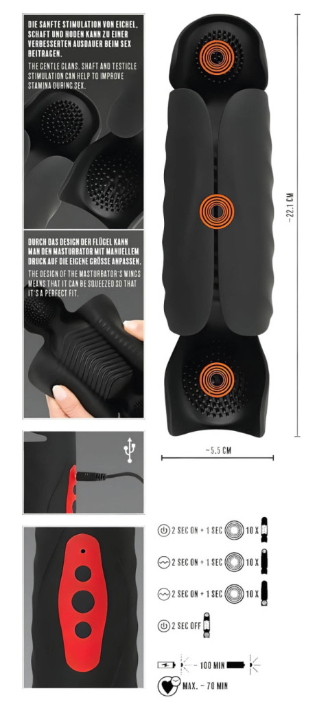 A készülék különlegessége a három különálló, nagy teljesítményű motorban rejlik, amelyek összehangolt munkája olyan mély és átütő rezgéseket kelt, amelyekre egyetlen motoros társai nem képesek. Az ergonomikus, kehely szerű kialakítás tökéletesen illeszkedik a makk formájához, így a vibráció minden irányból, közvetlenül éri az idegvégződéseket.