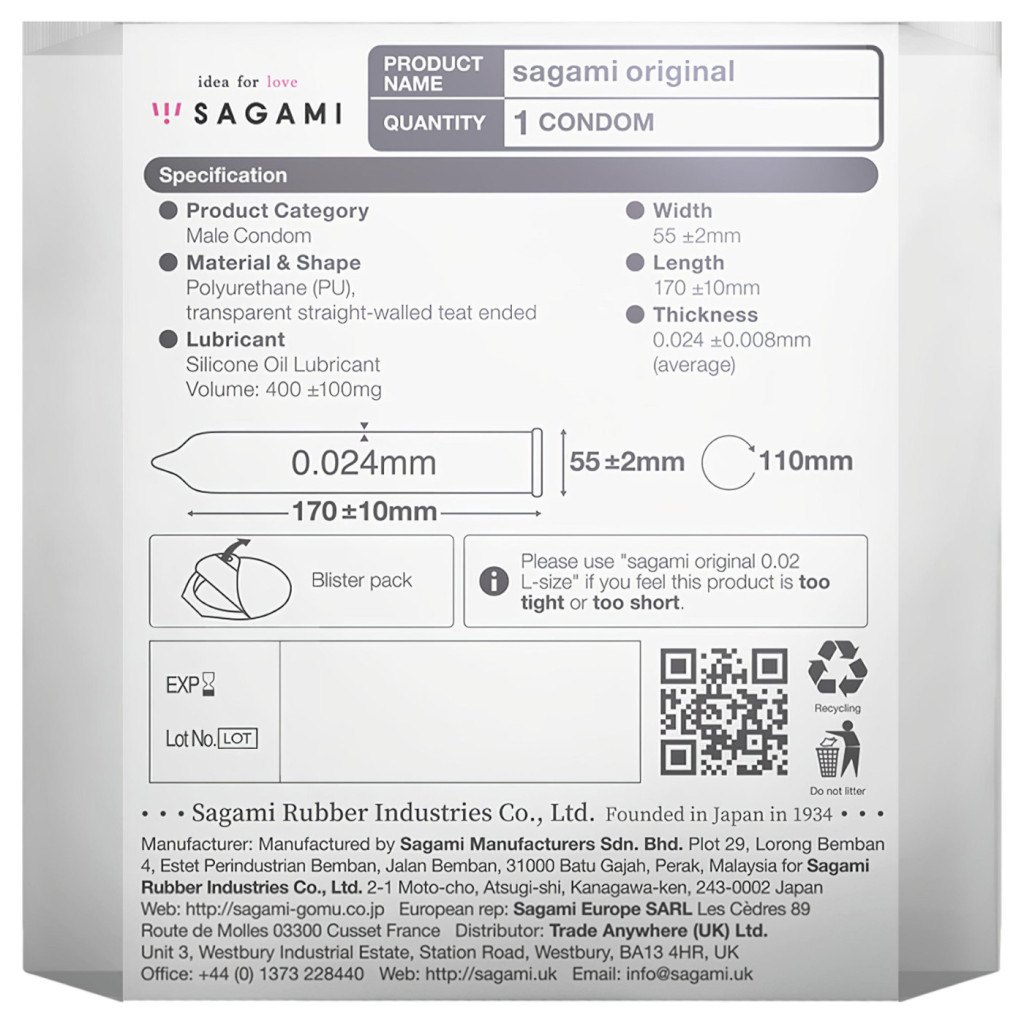 A Sagami Original 0,02 nem csupán egy óvszer, hanem a japán technológia csúcsteljesítménye, amely átírja a biztonságról és az élvezetről alkotott szabályokat. Mindössze 0,02 mm-es vastagságával a világ egyik legvékonyabb óvszere, amely szinte láthatatlan védelmet nyújt, miközben lehetővé teszi a legtermészetesebb intim élményt.