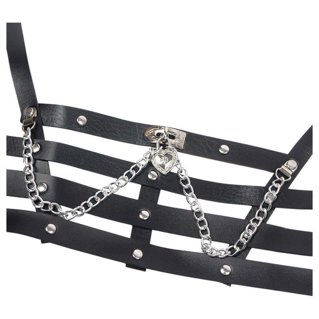 A hám mesteri módon ötvözi a sötét, elegáns pántokat a csillogó fém láncokkal, megteremtve az egyensúlyt a stílus és a vadság között. A prémium anyaghasználat nemcsak esztétikus megjelenést, hanem tartósságot is biztosít, így ez a kiegészítő hosszú ideig a ruhatára ékköve maradhat.