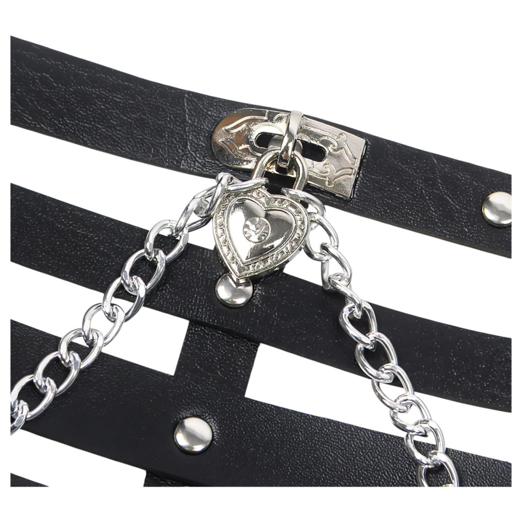 - Lenyűgöző vizuális hatás: A fekete pántok és a fémesen csillogó láncok kontrasztja azonnal magára vonzza a tekintetet.