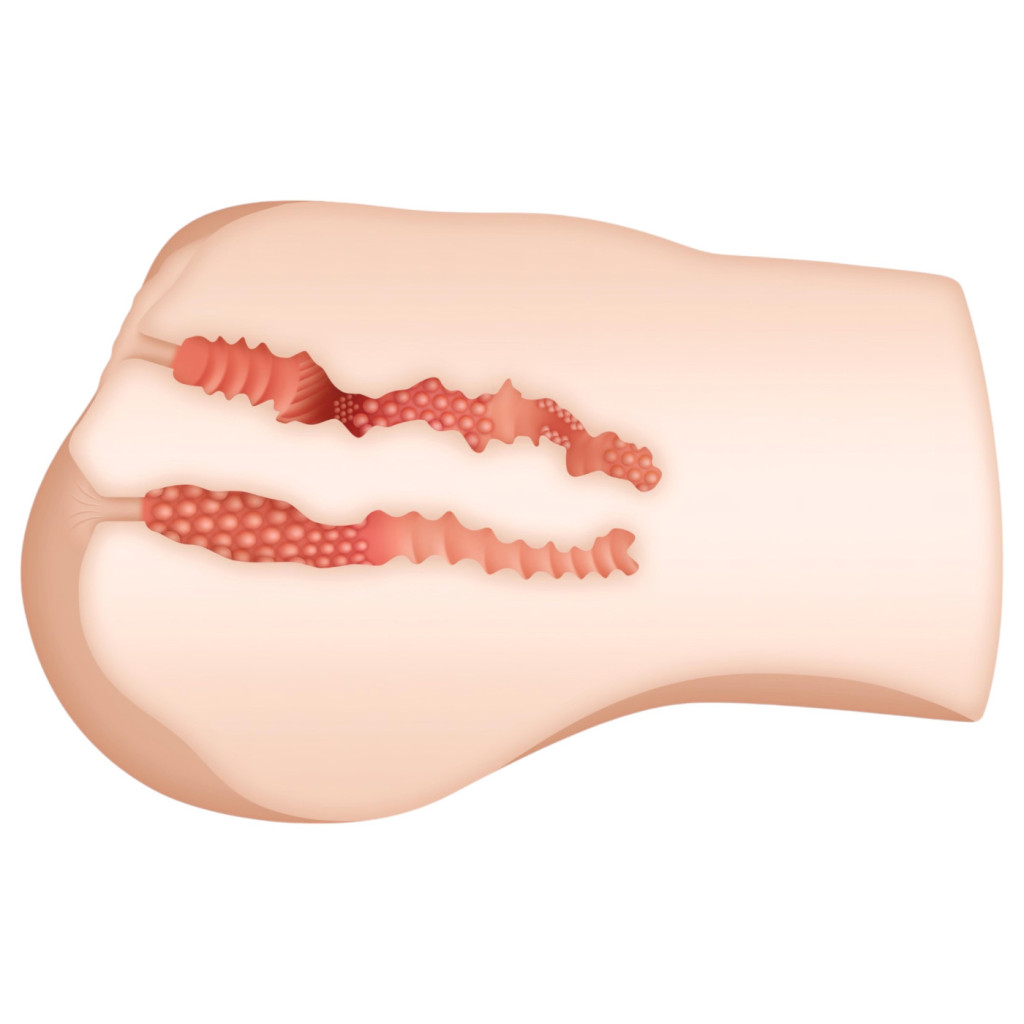 A termék különlegessége a dupla bemeneti nyílásban rejlik: Választhatszsz a szűkös vaginális vagy az izgalmas anális kényeztetés között. Mindkét csatorna belső szerkezete gazdagon texturált, bordázott és dudoros kialakítást kapott, hogy minden mozdulatnál maximális stimulációt nyújtson.